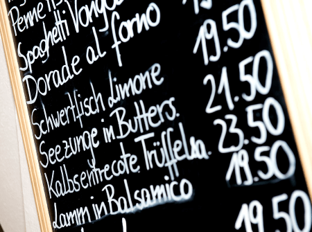 Mit frischen Produkten vor Ort, zum Teil vom Wochenmarkt vor der Haustür, entstehen Pizza-, Pasta-, Fleisch- und Fischgerichte vom Feinsten und mit stets saisonalem Touch.